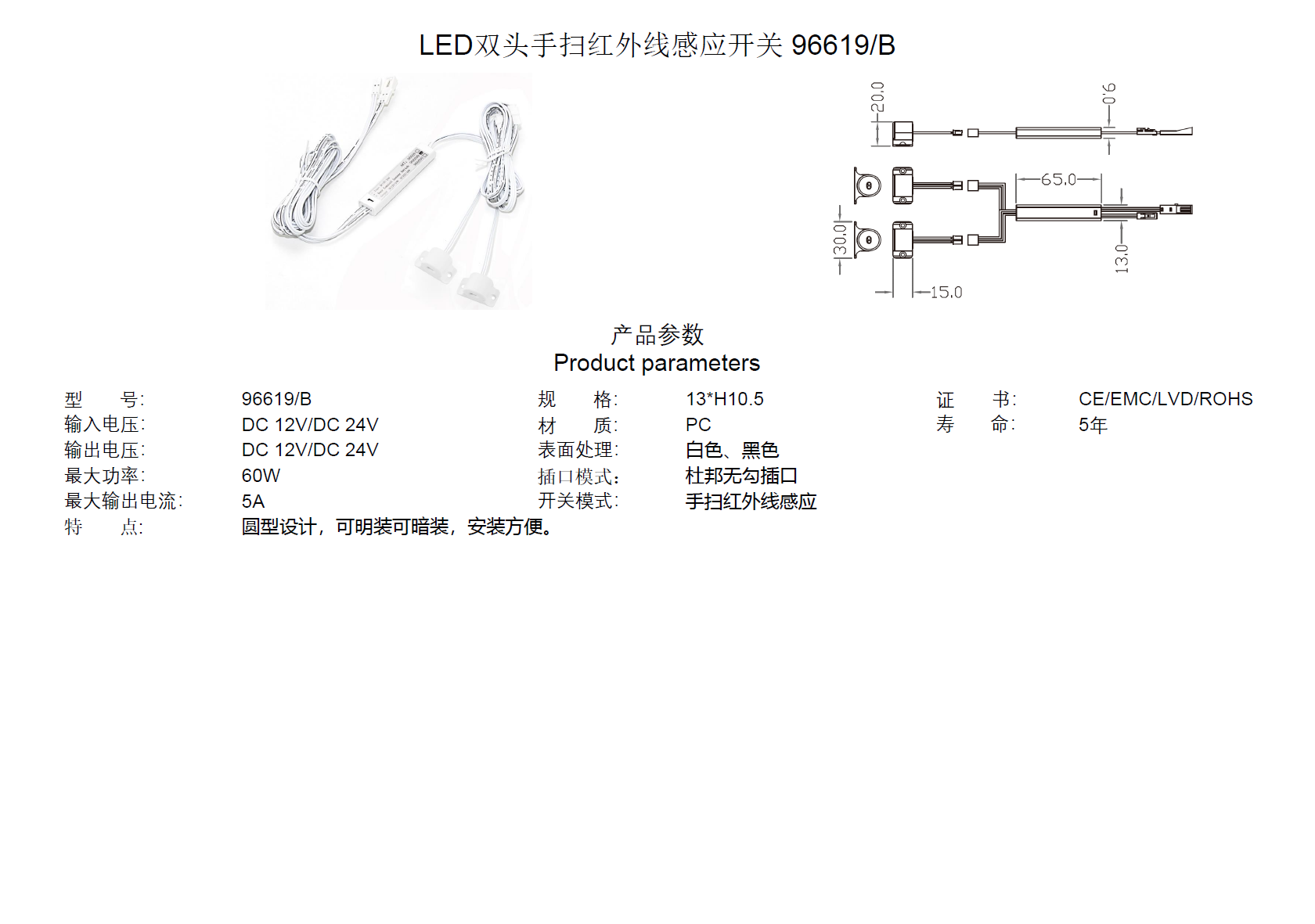 LED双头手扫红外线感应开关 96619C